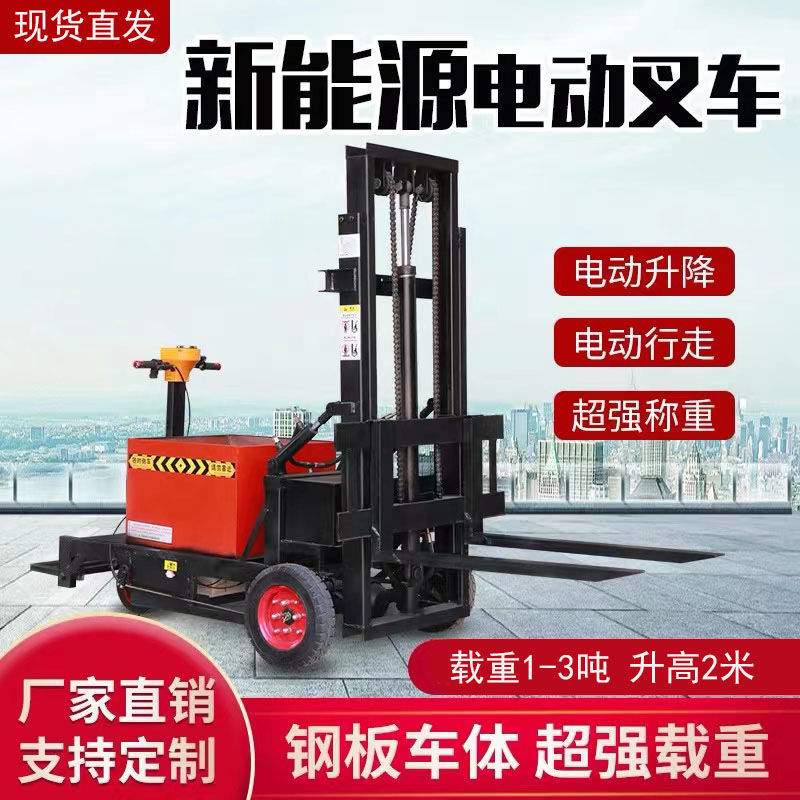 开鲁县小型电动叉车1吨站驾式2吨液压升高铲车全自动仓储堆高车